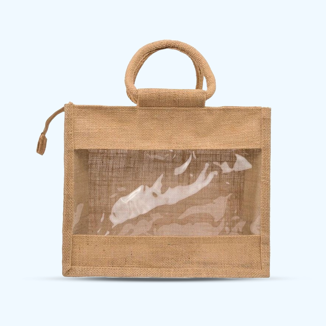 Make your gifting memorable and eco-conscious with our Jute Gift Bags featuring a charming floral design and a convenient transparent window. Handcrafted with care from sustainable jute and cotton materials, these bags offer a delightful blend of elegance, function, and environmental responsibility.